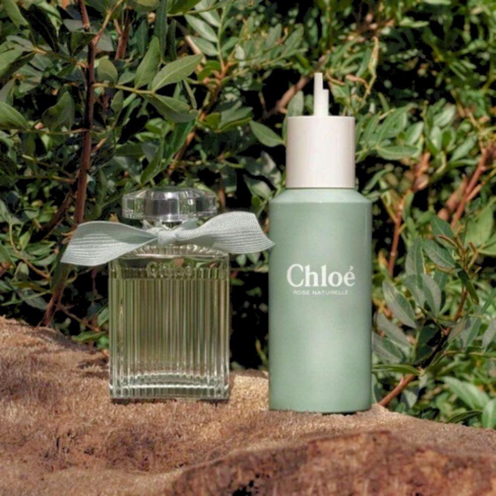 Refil de 150ml em embalagem minimalista e ecológica, feita com materiais recicláveis. Compatível com o frasco original do Chloé Rose Naturelle.