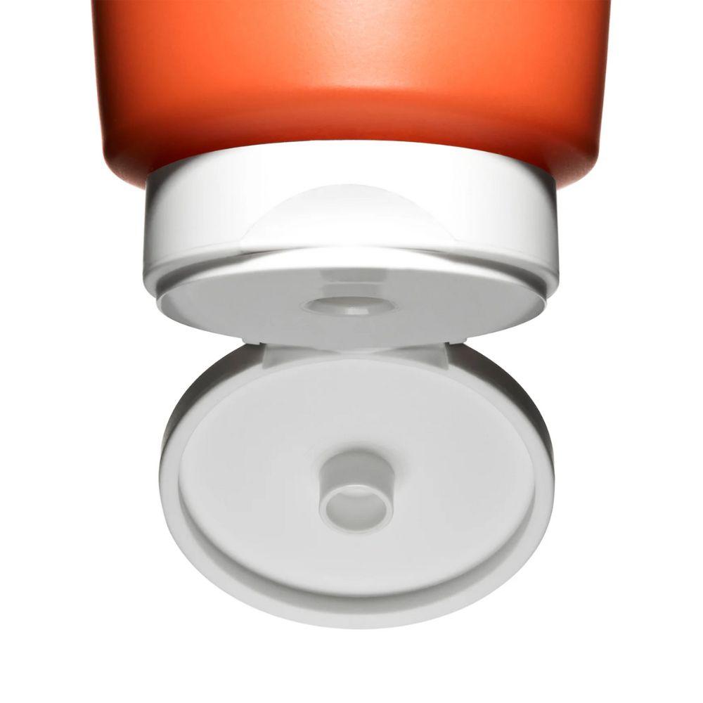 Frasco de 200ml com design clean e sofisticado, típico da linha Aroma da Clarins, prático e elegante para o dia a dia.