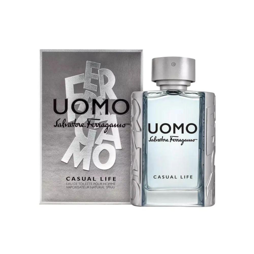 Salvatore Ferragamo Uomo Casual Life Eau de Toilette é uma fragrância masculina aromática amadeirada lançada em 2017. Desenvolvida para homens modernos e dinâmicos, oferece uma experiência olfativa vibrante e elegante, ideal para o dia a dia e ocasiões casuais.